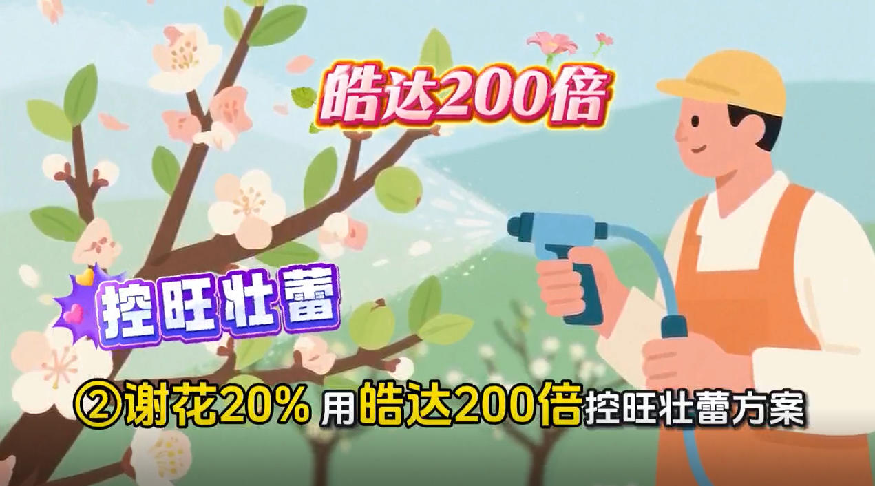 第二趟:谢花20%(盛花初期)——控旺壮蕾,减少竞争