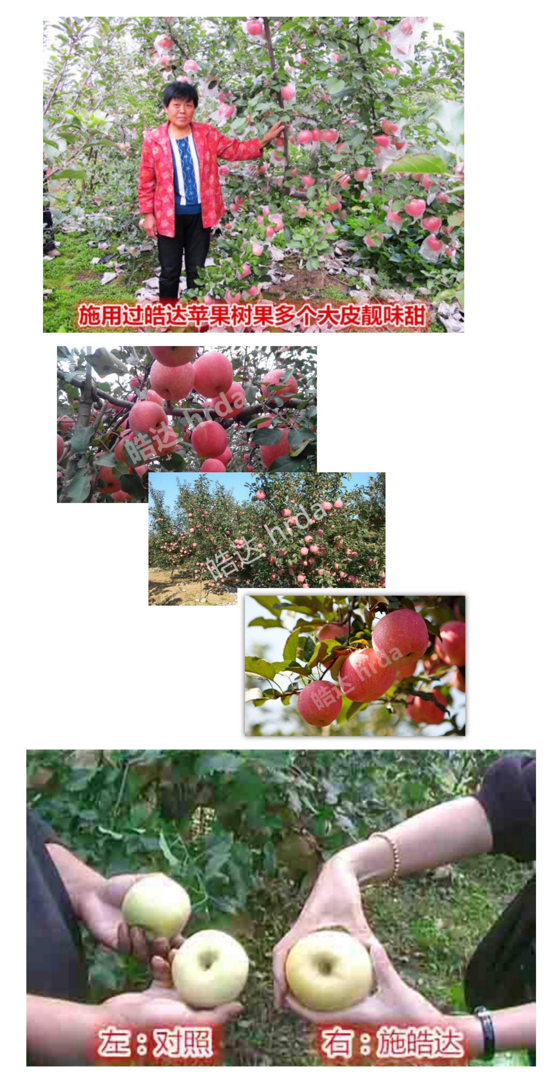 施肥时期:初花期(第一次萌芽后至开花前) 时期问题: 枝梢生长过快,树体养分大量消耗,花体不健康,抗病能力差; 施肥方案:淋根+叶喷 淋根:皓达功能肥30-50mL/株+水溶肥0.5% 叶喷:皓达功能肥500倍(30mL/30斤水)+皓达硼800倍(20mL/30斤水)+磷酸二氢钾500倍(30g/30斤水) 施肥效果: 促进花粉管的伸长,提高座果率,促进新梢生长;预防缺素型黄叶病的发生,可有效预防苹果后期“小叶病”,增强树体的防寒抗冻能力。