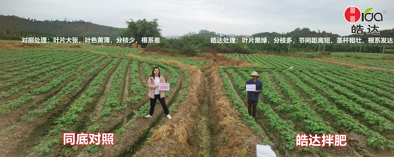 施肥时期:开花结荚期 时期问题:植株根系差,叶片黄,茎杆细长,花蕾少也不饱满; 施肥方案: 叶喷:(30斤水用量) ①皓达功能肥500倍(或30mL)+皓达硼800倍(或20mL)+杀菌药喷 ②皓达功能肥400倍(或40mL)+磷酸二氢钾800倍(或20mL)+杀菌药喷。注意:方案①②交换施用,间隔5-7天喷1次; 追肥撒肥:按每亩皓达功能肥0.5%(或100-200mL/亩)原液与肥料拌匀后撒施; 施肥效果:促进生长,茎杆粗壮节间距离短,花芽分化好,结荚率明显提高,矮壮蹲实抗病抗风抗倒伏能力提高。