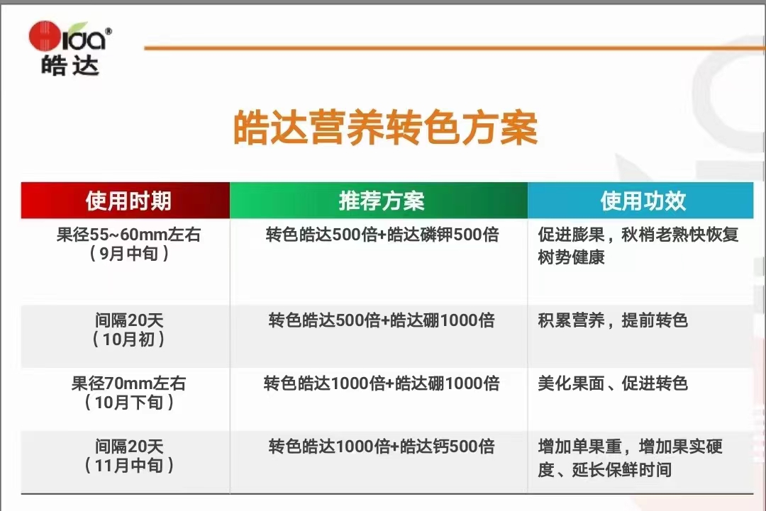 从9月中旬到11月中旬这段时间是柑橘果实膨大着色的重要时期。我们推荐使用皓达转色产品!