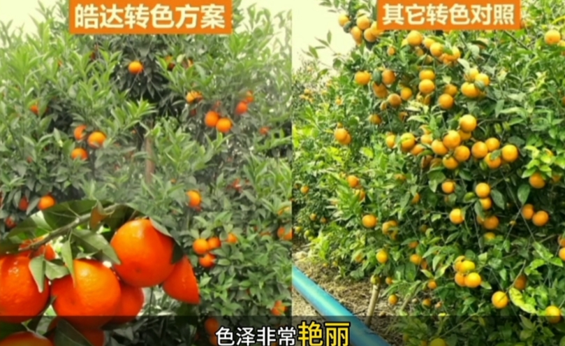 柑橘果实皮亮色艳,可直接提高商品价值,今天给大家分享皓达柑橘转色方案如何让果子快速转色,果皮转色后不褪色。