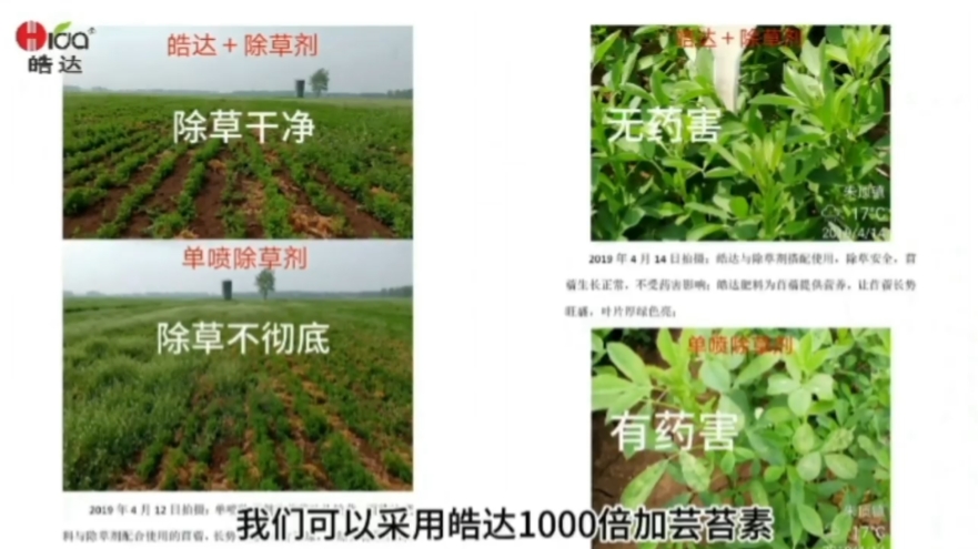 对于选择性除草剂易出现药害的问题,我们该怎么办?我们皓达农化服务得到这样的反馈:用皓达结合除草剂可以促进除草,让草死得快、死得干净,同时保护我们的作物不受或少受除草剂的影响,在使用苗后除草剂后,仍然可以不耽误作物正常生长。