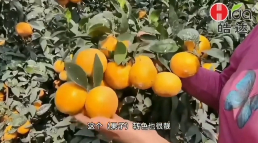 梁老板的沃柑从9月中旬开始第一次用转色皓达有机水溶肥(俗称白皓达)喷果。