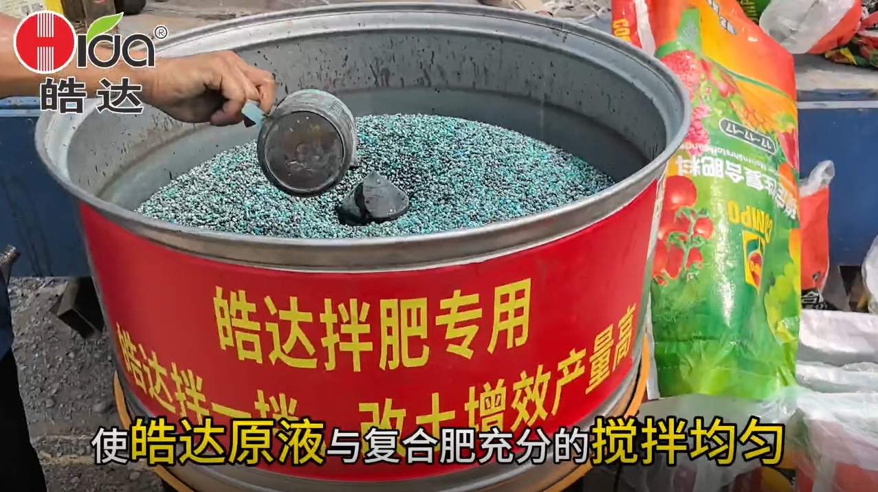 将皓达肥原液与复合肥按一定比例混匀,制成含有“皓达”的新型肥料。