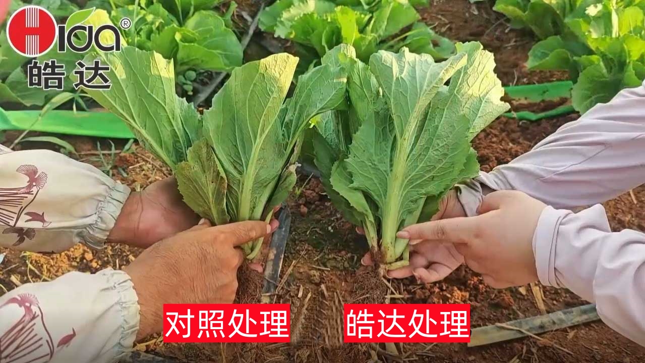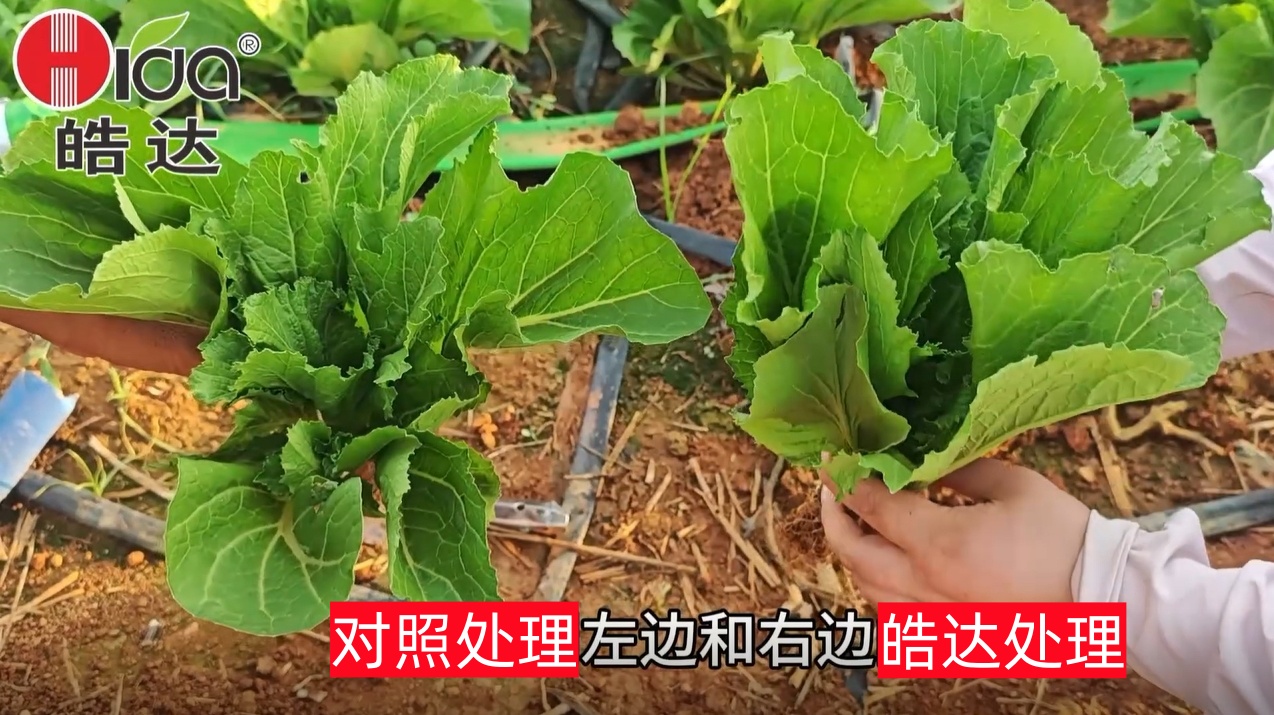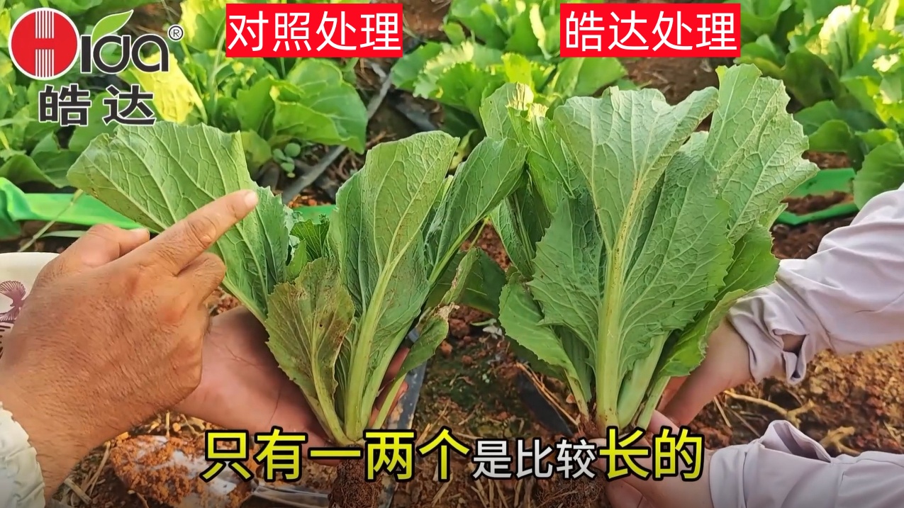 叶用芥菜的产量考核指标主要体现在:可食叶片和叶柄,今天我们一起来见证,每亩芥菜仅施用1斤皓达肥滴灌与同等成本的对照组芥菜生长对比会有哪些显著的效果: