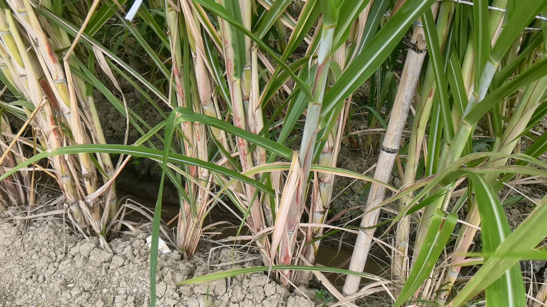 唐大姐给我们详细的介绍了她这一片蔗种地的详细情况“前茬种植水稻,今年地下害虫居多,又受到多次淹水的影响,作物生长基础非常弱,虽然经过两次压苗,但是因为压苗时间过晚,出现了明显的大小苗。唐大姐一度想放弃,自从加用皓达淋根+叶喷后,这片蔗种的长势显著改善,不仅整体长势健壮、茎秆粗壮、节间分布均匀,而且单株平均有效芽数达到12个,正常蔗种茎粗必须达到2.5cm,唐大姐的地块整体茎粗都在4.0cm左右,生长情况非常好。”她的话语里满是喜悦,感染了在场的每一位。