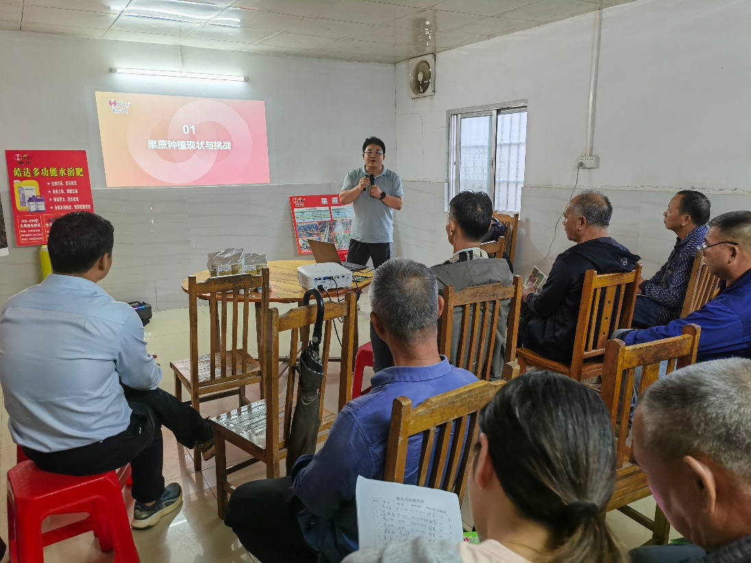 随后,皓达农业技术专家陈老师带来了干货满满的授课环节。他紧密结合蔗种生长周期,详细拆解了皓达的核心价值,不仅在保苗、分蘖、拔节等关键生长期表现突出,能切实助力提升蔗种种植收益,更能在蔗种遭遇病虫害威胁、恶劣天气侵袭及土壤退化等困境时,发挥显著的防护与改良作用。