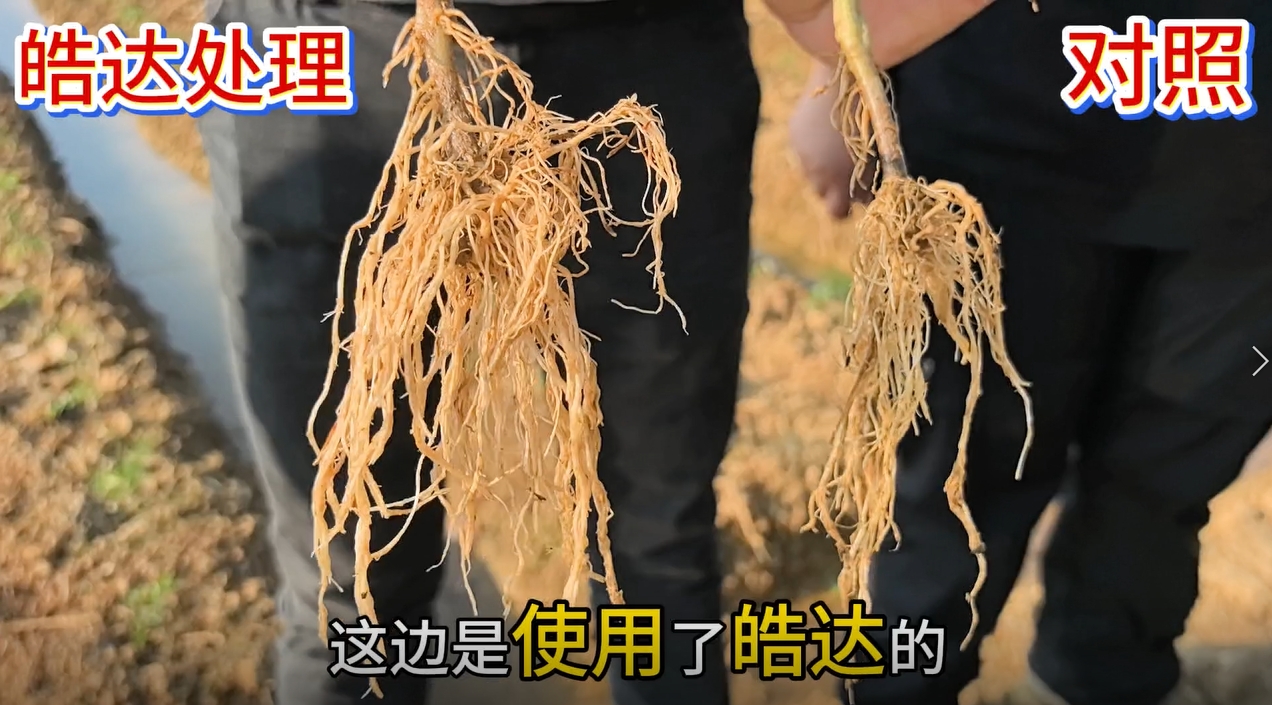 1、皓达处理的番茄根系较对照的更多更丰富。